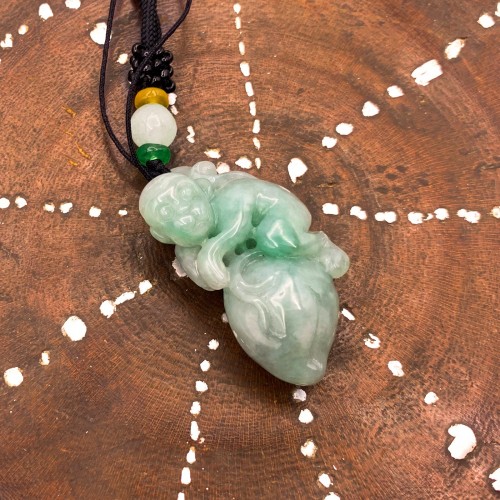 Certified Green Burma Natural A Jade Jadeite Pendant Monkey Peach