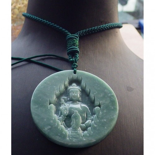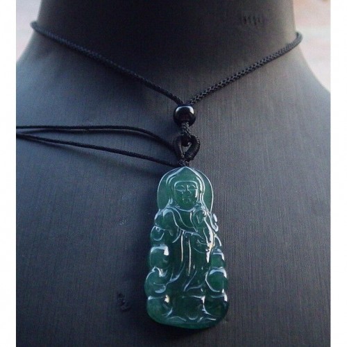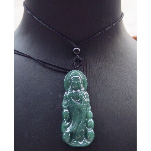Certified Green Burma Natural A Jade Jadeite Pendant Buddha Guanyin Necklace