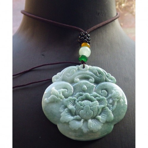 Certified Green Burma Natural A Jade Jadeite Pendant Fox Lotus Flower