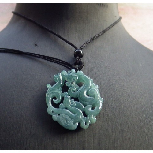 Certified Green Burma Natural A Jade Jadeite Pendant Dragon Circle