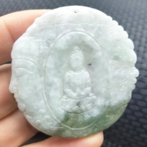 Certified Green Lavender Natural A Jadeite Carved Half Buddha Half Devil Pendant