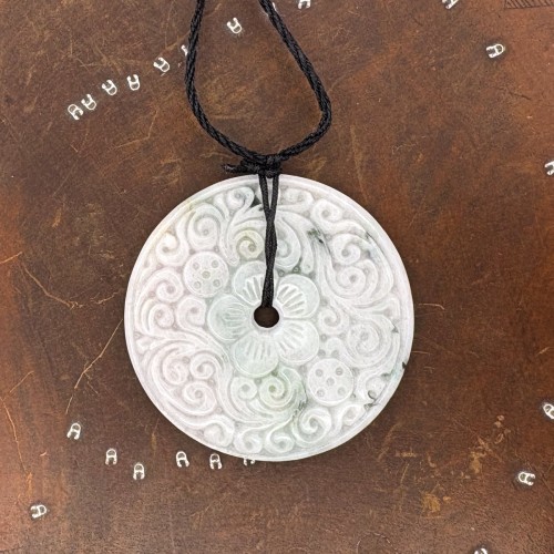 Certified Green Floral Natural Type A Jade Jadeite Carved Flower Pendant