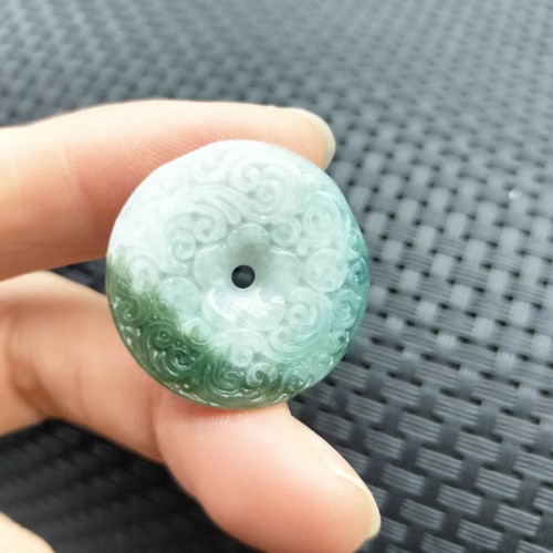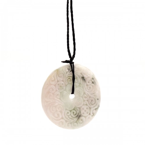 Certified Green Lavender Natural A Jadeite Moire Safety Circle Donut Pendant