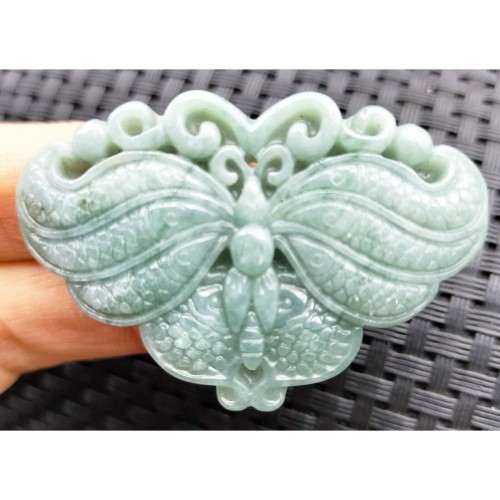 Certified Green Burma Natural Type A Jade Jadeite Carved Butterfly Pendant