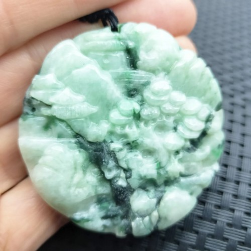 Certified Green Lavender Natural A Jade Jadeite Pendant Landscape Painting Necklace