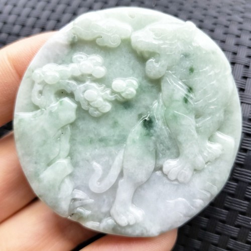 Certified Green Burma Natural Type A Jade Jadeite Carved Dragon Coin Pendant Necklace