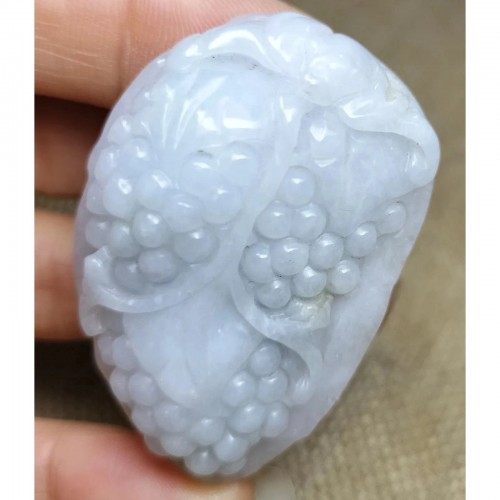 Certified Lavender Natural Type A Jade Jadeite Carved Bat Grape Pendant