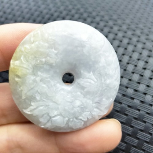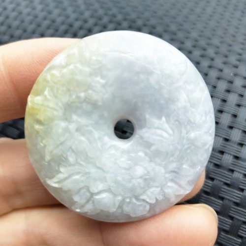 Certified Lavender Natural A Jadeite Pendant Orchid Flower Circle Donut