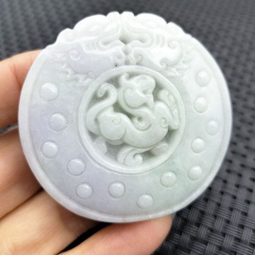 Certified Lavender Natural A Jadeite Carved Retro Style Dragon Pi Xiu Pendant