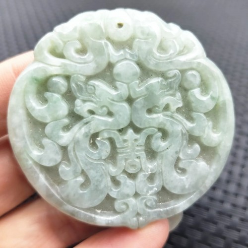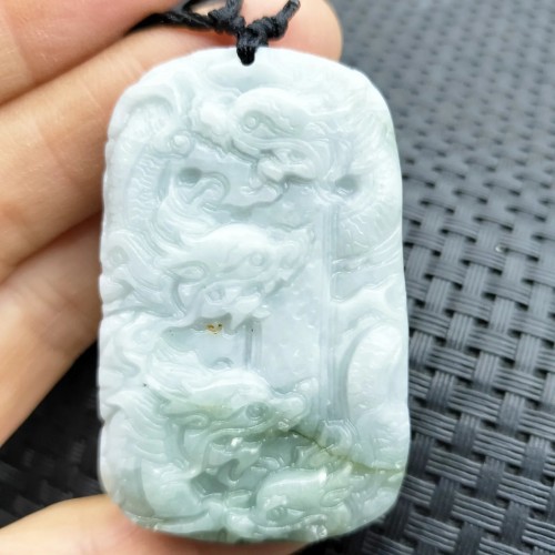 Certified Light Green Natural A Jade Jadeite Carved Longevity Dragon Pendant