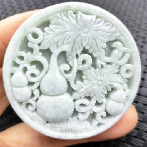 Certified Lavender Natural Type A Jade Jadeite Carved Gourd Leaf Pendant