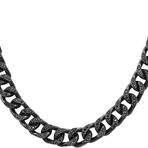 Mens Black Stainless Steel Curb Link Chain Necklace With Cubic Zirconia