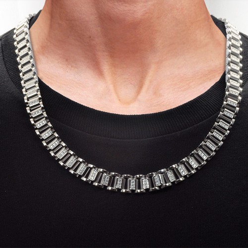 Mens Stainless Steel Flat Byzantine Link Chain Set With Cubic Zirconia