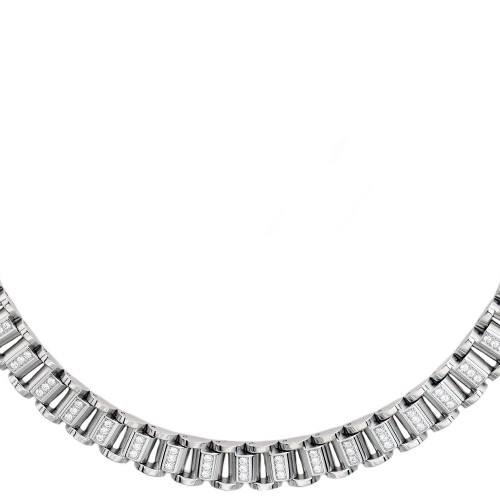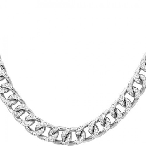 Mens Stainless Steel Curb Link Chain Necklace With Cubic Zirconia