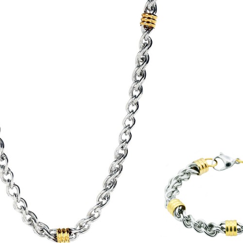 Mens Two Toned Matt Gold Plated Stainless Steel Cuban Link 24″ Chain Necklace