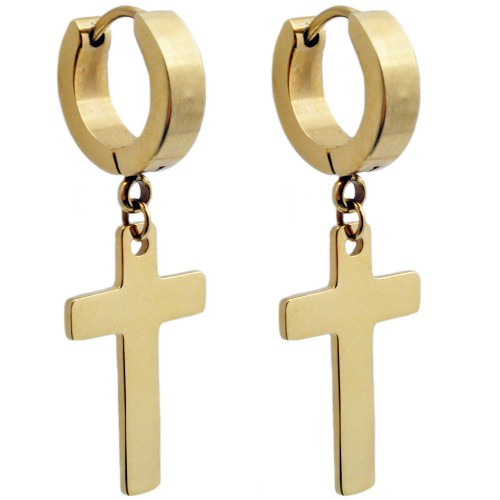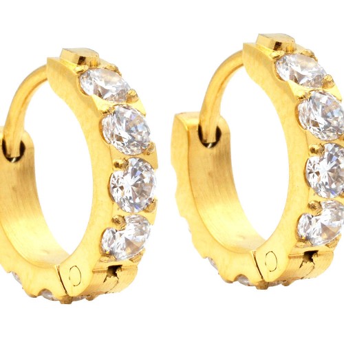 Men’s Gold Stainless Steel Hoop Earrings With Cubic Zirconia