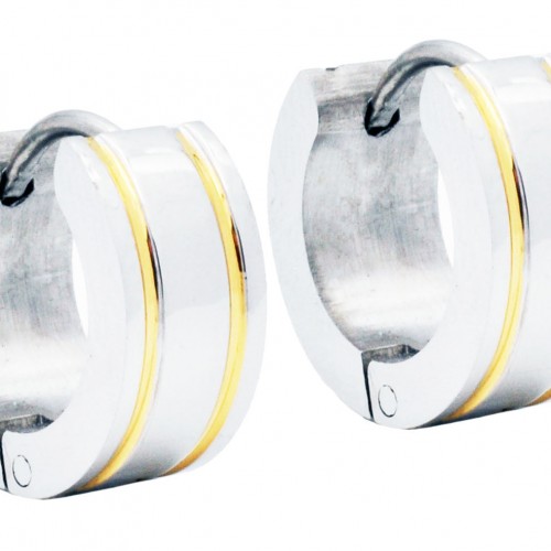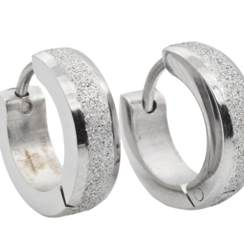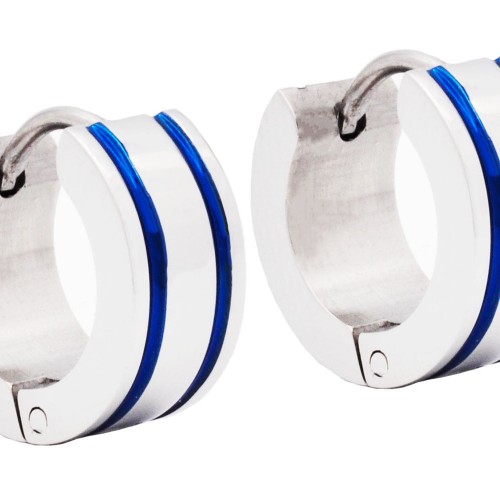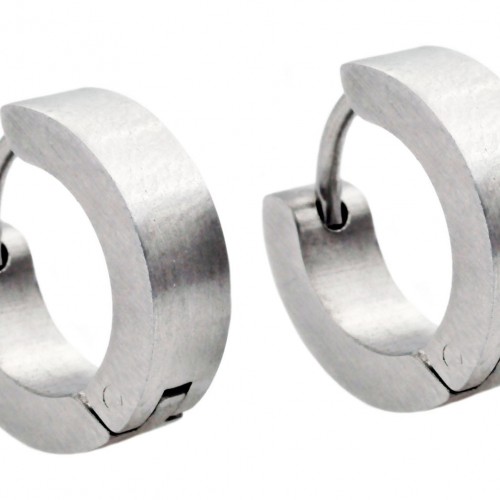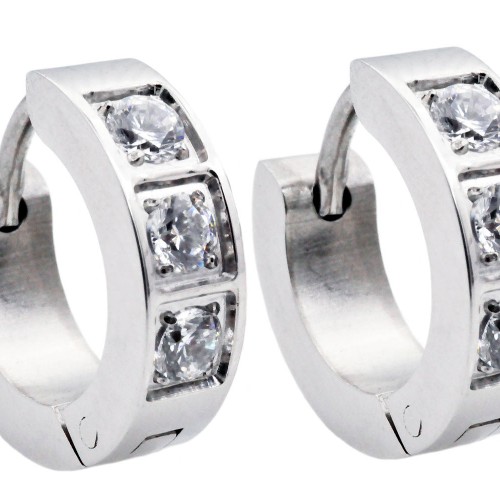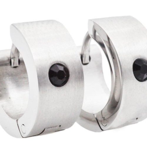 Mens 14mm Stainless Steel Hoop Earrings With Black Cubic Zirconia