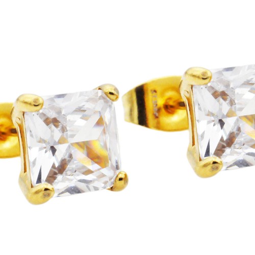 Mens 7mm Cubic Zirconia Gold Stainless Steel Square Stud Earrings
