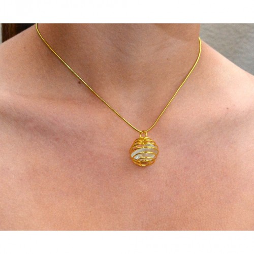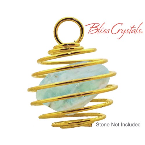20 mm Crystal Spiral Cage Pendant, Silver Plated Small Bead Gem Healing Crystal and Stone #SC41