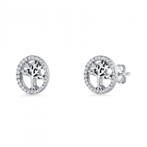 Tree Of Life Stud Earrings Cubic Zirconia 925 Sterling Silver Wholesale