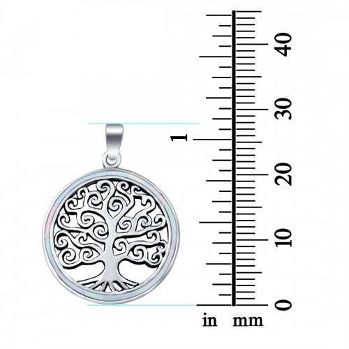Tree of Life Round Lab Created White Opal Charm Pendant 925 Sterling Silver