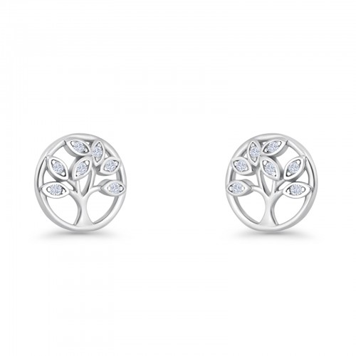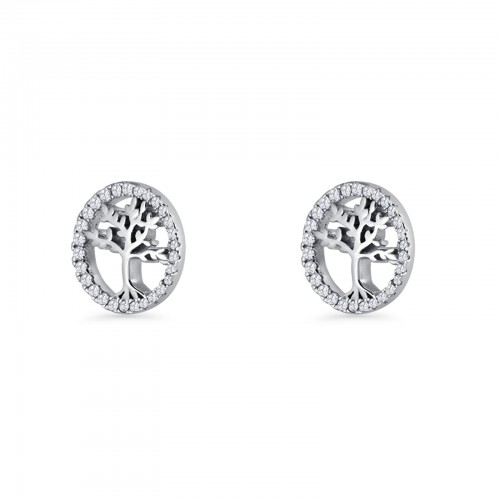 Tree Of Life Stud Earrings Cubic Zirconia 925 Sterling Silver Wholesale