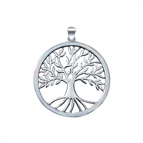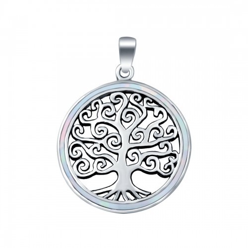Tree of Life Round Lab Created White Opal Charm Pendant 925 Sterling Silver