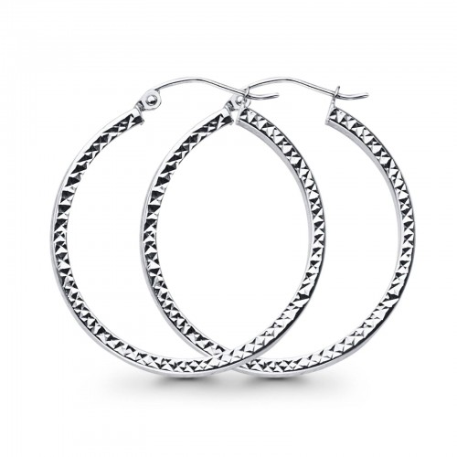 White 14K Gold Full Diamond Cut Square Tube Hollow Hoop Snap Closure Earrings 2.2grams 28mm