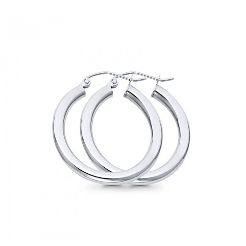 White Gold 14K Real 3mm Stylish Plain Snap Closure Hoop Earrings Hinged 1.8grams 24mm