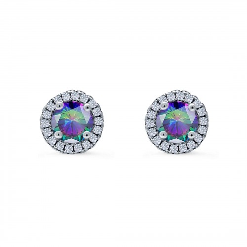 Wedding Stud Earrings Simulated Rainbow CZ Round 925 Sterling Silver
