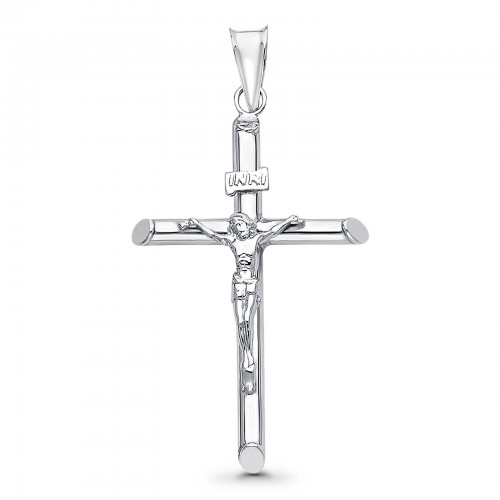 White Gold 14K Real Jesus Crucifix INRI Cross Religious Charm Pendant 1.5g
