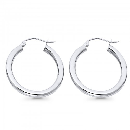 White Gold 14K Real 3mm Stylish Plain Snap Closure Hoop Earrings Hinged 1.8grams 24mm