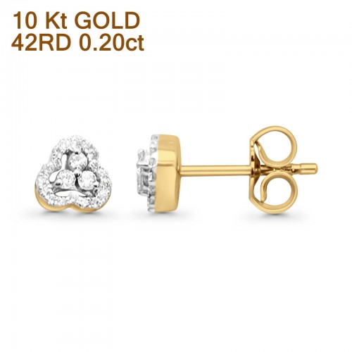 Wholesale Solid 10K Yellow Gold 5.6mm Open Heart Dainty Round Diamond Stud Earring With Push Backing