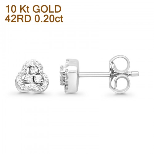 Wholesale Solid 10K White Gold 5.6mm Open Heart Dainty Round Diamond Stud Earring With Push Backing