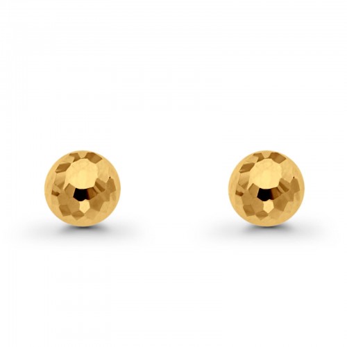 Yellow 14K Gold Real 8mm Disco Ball Earrings With Push Back 1.4grams