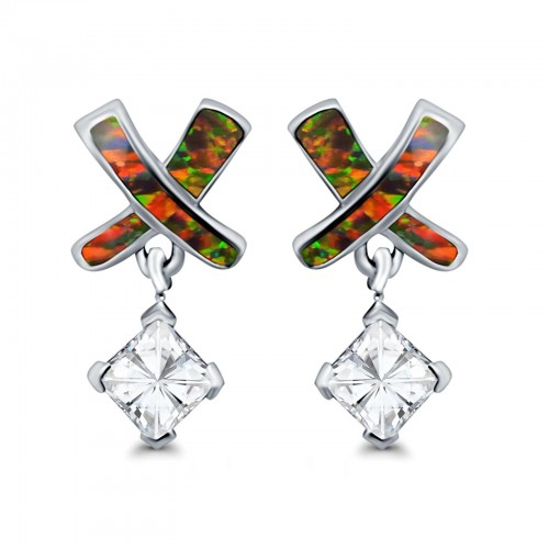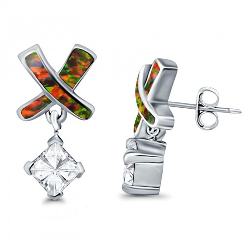 X CrissCross Stud Earrings Lab Created Black Opal & Cubic Zirconia 925 Sterling Silver (20mm)