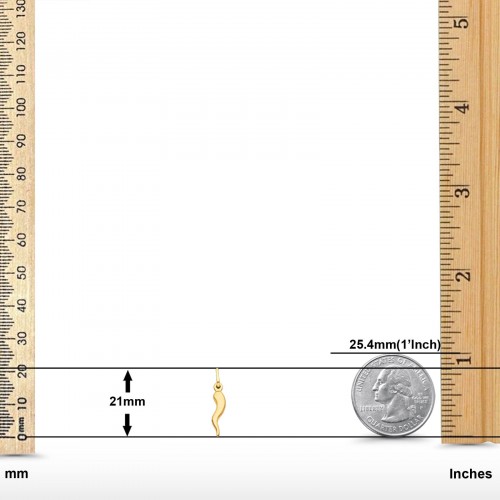 Yellow 14K Gold Real Cornicello Horn Charm Pendant 18X8mm 0.7grams