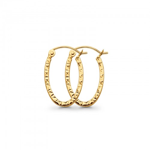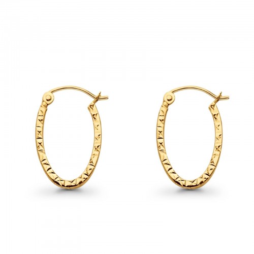 Yellow 14K Gold Square Tube Diamond Cut Shape Snap Closure Hoop Earrings 0.9grams 20X13
