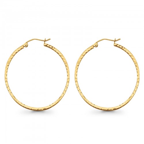 Yellow 14K Gold Real Square Tube Diamond Cut Snap Closure Hoop Earrings 1.9grams 35mm