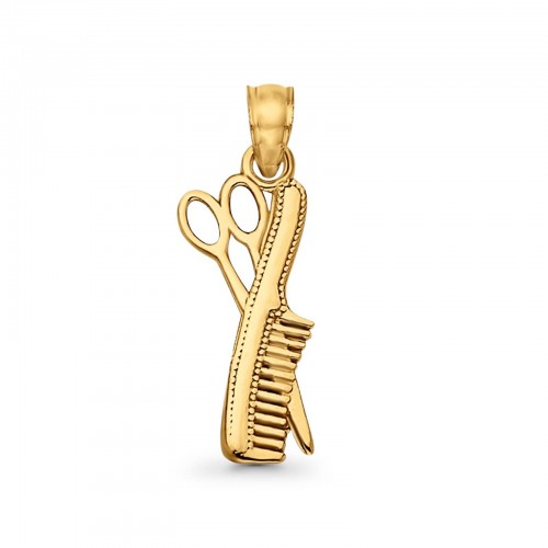 Yellow Gold 14K Beautiful Scissors & Comb Charm Pendant Real 0.7g 17mmX8mm