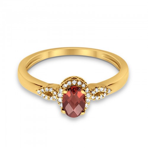 10K Oval 4×6 mm Diamond Ring .66cts Yellow Gold Garnet Size 6.5