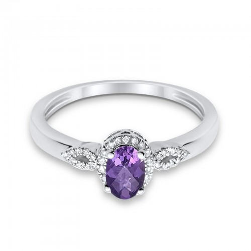 10K Oval 4×6 mm Diamond Ring .46cts White Gold Amethyst Size 6.5