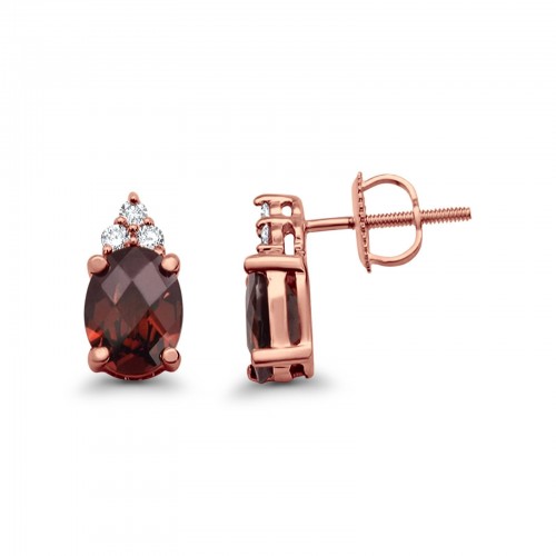 10K Rose Gold Garnet & Diamond 0.4cts Round Pendant Necklace 18″ Long