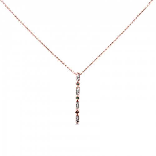 10K Rose Gold .10cts Green Emerald & Drop Diamond Pendant Necklace 18″