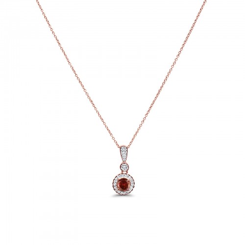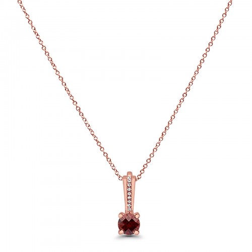 10K Rose Gold Garnet & Diamond 0.7cts Round Pendant Necklace 18″ Long