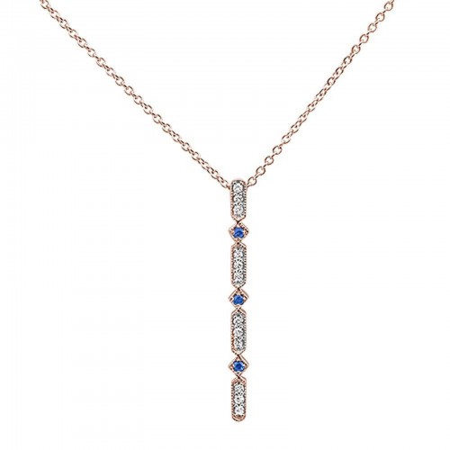 10K Rose Gold .17ct Sapphire & Diamond Antique Reproduction Necklace