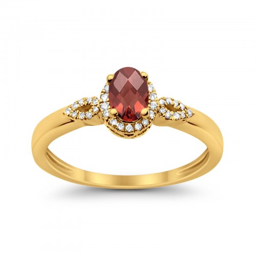 10K Oval 4×6 mm Diamond Ring .66cts Yellow Gold Garnet Size 6.5