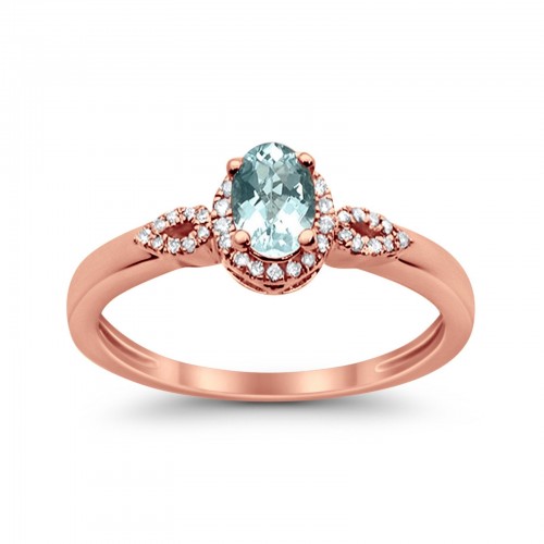 10K Oval 4×6 mm Diamond Ring .47cts Rose Gold Aquamarine Size 6.5