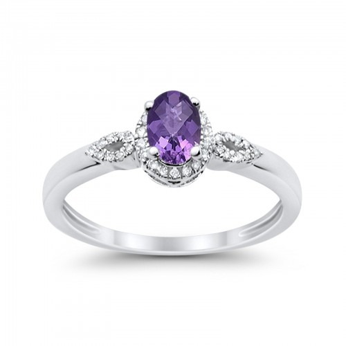 10K Oval 4×6 mm Diamond Ring .46cts White Gold Amethyst Size 6.5