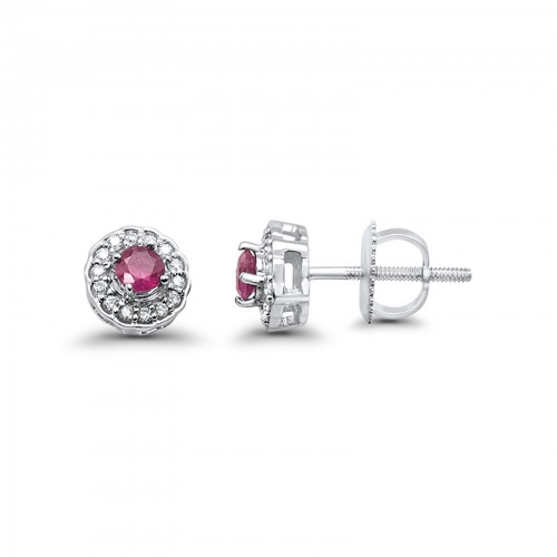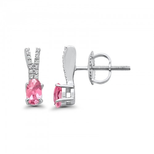 10K White Gold Pink Tourmaline & Diamond 0.46cts Oval Earrings